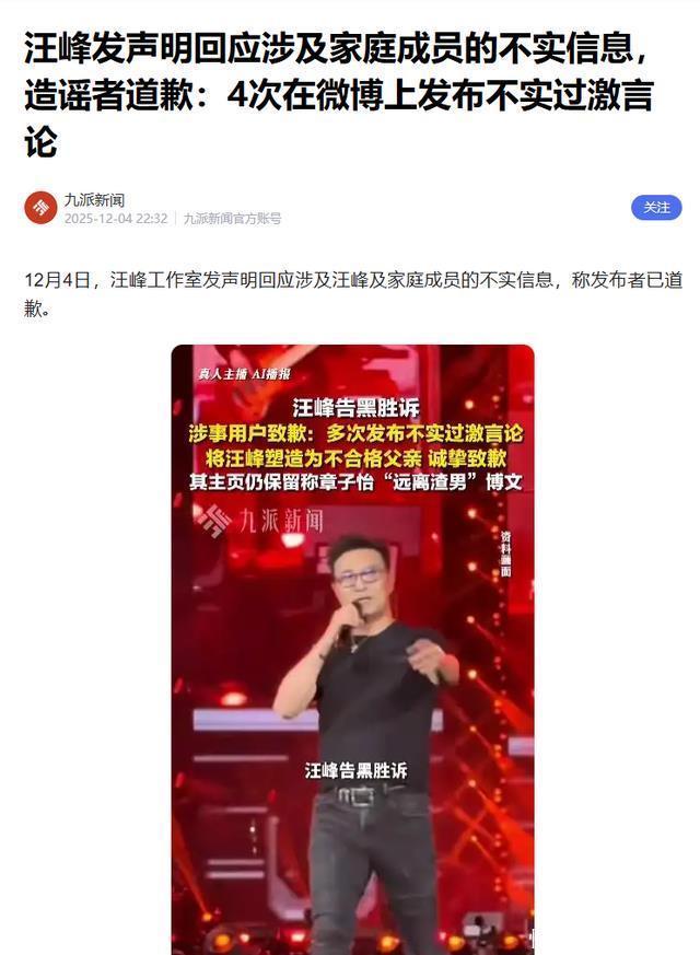 这一判决结果大快人心。 当日,该用户便公开发表致歉信。 言辞恳切,希望能获谅解。 承认自己“未经核实发布不实言论,将汪峰塑造为不合格父亲,严重损害其社会形象”,并表示会永久删除相关内容。